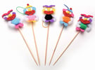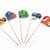 Einfache Holzpikser mit bunten eckigen Steinen von Sier. Ideal für jeden Obstteller oder Brotdose.